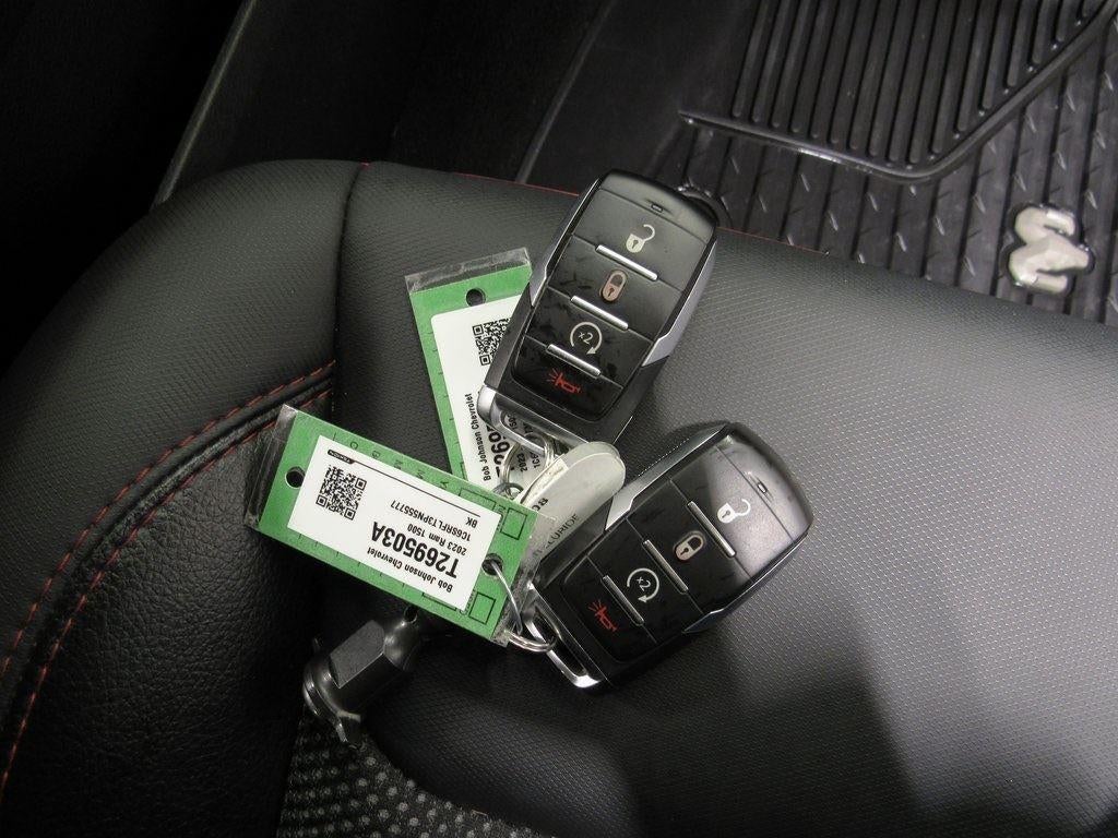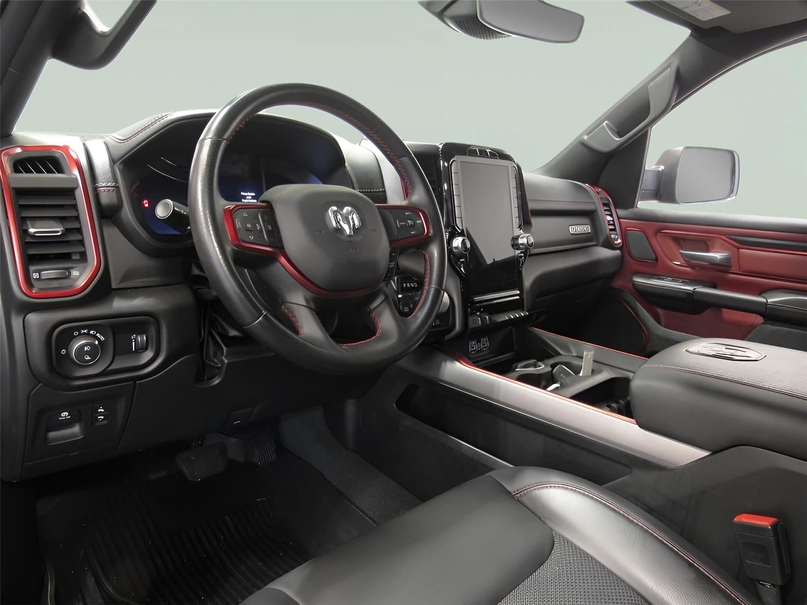 This 2023 Ram 1500 Rebel, has a Diamond Black Crystal Pearlcoat exterior and an Red/Black interior color. 29,789 miles. Stock Number T269503A. You can connect with us by calling (585) 663-4040. Quick Order Package 27W RebelRebel Level 2 Equipment Group ($4,495 value)2nd Row in Floor Storage BinsHeated Front SeatsRear Underseat Compartment StorageFoam Bottle Insert (door Trim Panel)Rear Window DefrosterRear Power Sliding WindowSun Visors with Illuminated Vanity MirrorsAuto Dim Exterior Driver MirrorBlack Premium Power Mirrors2-Door Passive Entry, Front Door LocksOff-Road Information PagesRain Sensitive Windshield Wipers115V Auxiliary Rear Power OutletGPS NavigationGPS Antenna InputPower 2-Way Driver Lumbar AdjustPower 8-Way Driver SeatBlack Exterior MirrorsExterior Mirrors with Supplemental SignalsExterior Mirrors Courtesy LampsPower-Folding MirrorsConvex Wide-Angle Exterior Mirror InsertRear Dome with On/off Switch LampSecurity AlarmAccent Color Door HandlesExterior Mirrors with Heating ElementHeated Steering WheelHarman/kardon 19 Speaker Premium SoundGlobal Telematics Box ModuleHD RadioGoogle Android AutoUSB Host Flip12" Touchscreen DisplayApple CarPlayDisassociated Touchscreen DisplayMedia Hub with 2 Charge Only USBsIntegrated Center Stack RadioConnectivity - US/Canada4G LTE Wi-Fi Hot SpotSiriusXM with 360LConnected Travel and Traffic ServicesUconnect 5 Navigation with 12.0" Display RadioSiriusXM Radio ServiceFor Details, Visit DriveUconnect.comFor More Info, Call 800-643-2112Power Adjustable PedalsRemote Start SystemUniversal Garage Door OpenerParkSense Front/rear Park Assist with StopIntegrated Voice Command with Bluetooth® Comfort Heated steering wheel - A warm touch. Trying to drive with bulky winter gloves on isn't always easy. Keep your hands warm in cold temperatures so you can ditch the mitts and get a firm grip with this heated steering wheel.Convenience Keyfob engine start control - Get an early start. Remotely start your vehicle's engine from the key fob, ensuring your ride is ready to go when you get in. Now you can stay comfortable inside while your vehicle gets comfortable outside, thanks to Keyfob engine start control.Safety and Security Forward collision mitigation - Forward thinking. You look away for just a second and suddenly the vehicle in front of you has stopped. That's when the forward collision mitigation system comes to life. When it senses an impending impact, it will activate a combination of features to help prevent or reduce the severity of an accident. Forward collision mitigation is always looking ahead.Technology and Telematics Smart device mirroring - Smartphone, meet smart car. You can control your device through your vehicle's infotainment system. Smart device mirroring brings together safety and convenience by making it easier to find what you're looking for while keeping your eyes on the road. Voice activated integrated navigation system - A to B made easy! Whether it's an errand or a road trip, the voice activated integrated navigation system will guide you to your destination. No more bulky, impossible-to-fold maps, and no more stopping to ask for directions. Just tell it where you want to go, and the voice activated integrated navigation system shows you the right way. ENGINE: 5.7L V8 HEMI MDS VVT ETORQUE, TRANSMISSION: 8-SPEED AUTOMATIC (8HP75), QUICK ORDER PACKAGE 27W REBEL, WHEELS: 18" X 8.0" PAINTED MID-GLOSS BLACK, MONOTONE PAINT, DIAMOND BLACK CRYSTAL PEARLCOAT, DIAMOND BLACK CRYSTAL PEARLCOAT, RED/BLACK, CLOTH/VINYL LOW BACK BUCKET SEATS, GVWR: 7,100 LBS, REBEL LEVEL 2 EQUIPMENT GROUP, TRAILER BRAKE CONTROL, RADIO: UCONNECT 5 NAV W/12.0" DISPLAY, REMOTE START SYSTEM, PARKSENSE FRONT/REAR PARK ASSIST W/STOP, INSTRUMENT CLUSTER THEME 2 - REBEL Come on in to Bob Johnson Chevrolet Rochester today at 1271 W RIDGE RD ROCHESTER NY 14615 or call (585) 663-4040 to schedule a test drive!